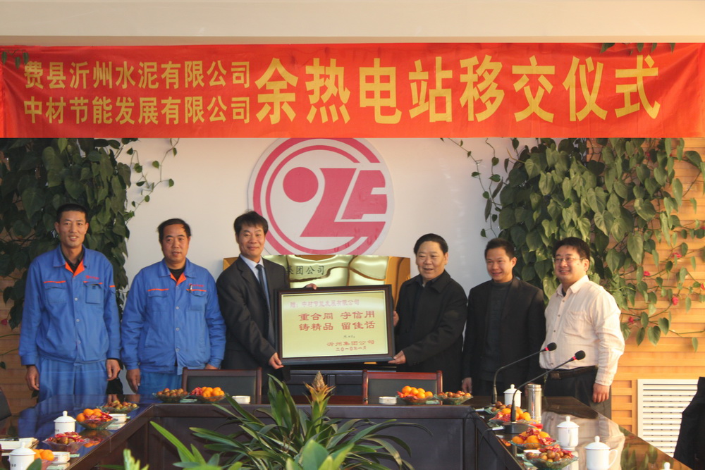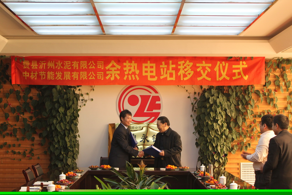 上午9時18分,費縣沂州水泥有限公司5000t/d熟料水泥窯余熱電站移交儀式正式開始。公司總經理何新平、副總經理葛立武、現場經理晏琳灃及沂州集團公司黨委書記張懷連、費縣沂州水泥有限公司總經理主冠強、副總經理徐世杰等共同出席了移交儀式。在移交儀式上何總、葛總與張懷連書記親切交談并共同簽署了余熱電站移交文件。
