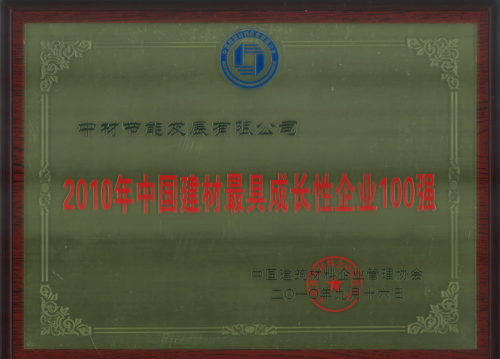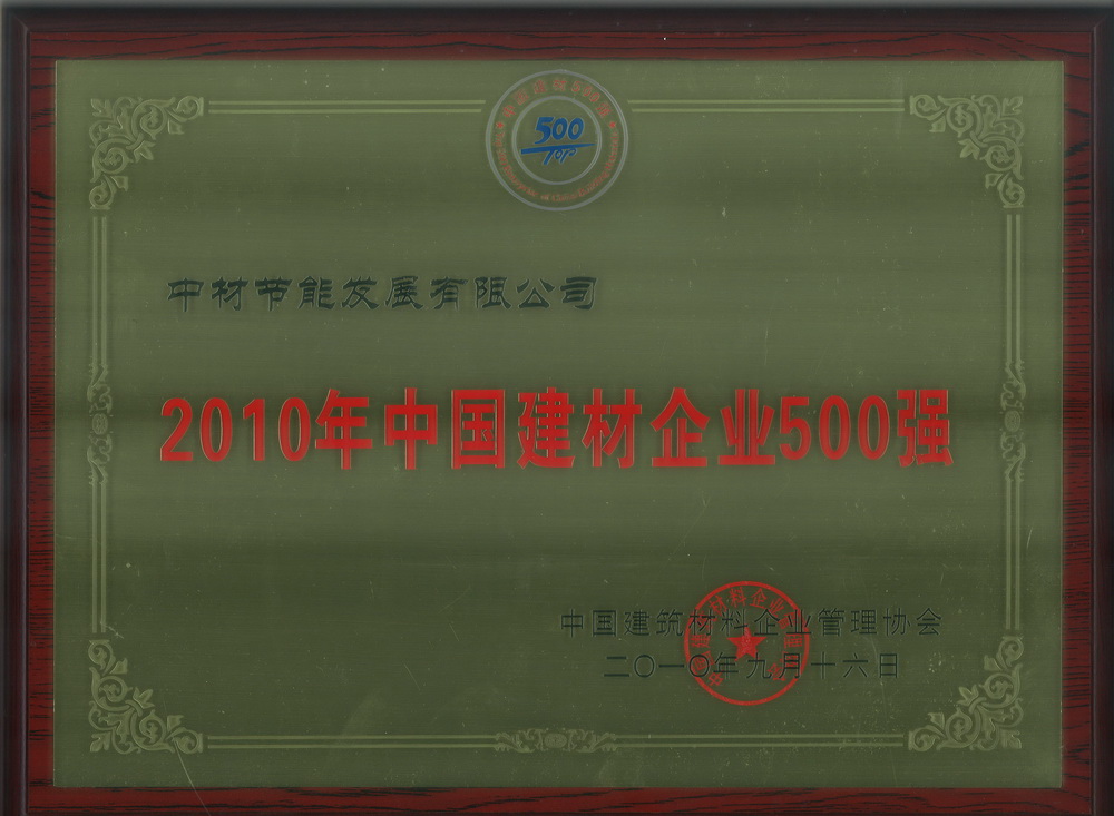 中材節(jié)能入圍2010年度中國建材企業(yè)五百強(qiáng)和最具成長性企業(yè)一百強(qiáng)