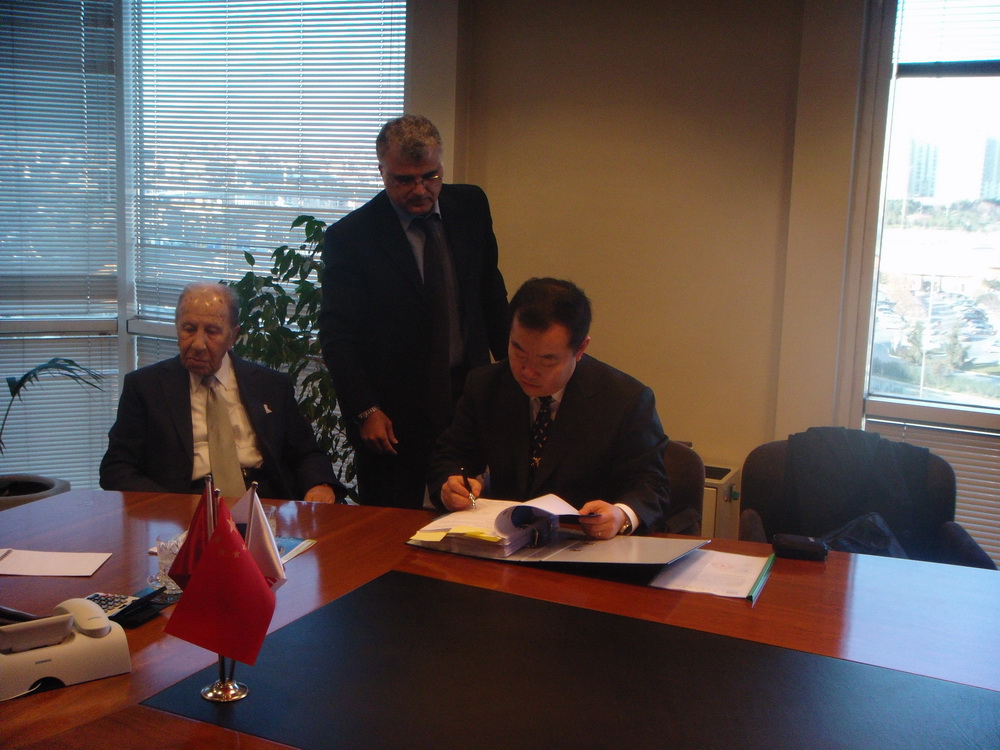 中材節(jié)能市場(chǎng)部部長(zhǎng)王毅、項(xiàng)目經(jīng)理曲鐵政、劉強(qiáng)及洪會(huì)林與Nuh Cimento Sanayi A.S.水泥公司董事長(zhǎng)Mr. ATALAY SAHINOGLU、執(zhí)行董事Mr. OZER YURTBILIR及項(xiàng)目組成員共同出席了合同簽約儀式。