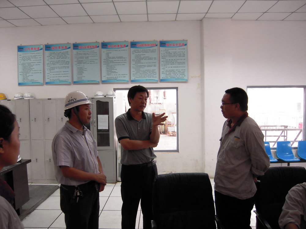 2011年7月21日,張奇董事長冒著炎炎酷暑,在投資部部長楊巍、副部長季敏海的陪同下,來到鹿泉中材節能余熱發電有限公司慰問電站員工并視察指導工作。