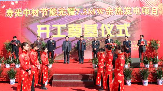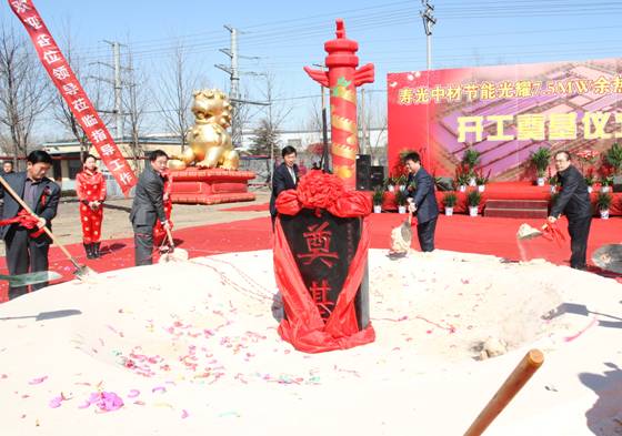 2012年3月11日上午10點18分,中材節(jié)能股份有限公司首個玻璃行業(yè)余熱發(fā)電項目——壽光中材節(jié)能光耀7.5MW余熱發(fā)電項目開工奠基儀式在山東壽光隆重舉行。