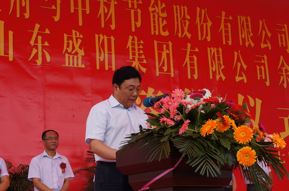 王行華書記在儀式上發表了講話,他希望中材節能公司和山東盛陽集團抓住發展機遇,加快項目推進速度,提高項目建設質量,力爭早建成、早投產、早見效,實現互動雙贏、共同發展。希望全區各級各有關部門按照“提速增效、創先爭優”的要求,牢固樹立“為企業服務、幫企業發展、助企業成功”的意識,提供優質、高效服務,全力支持項目建設,確保項目順利推進。