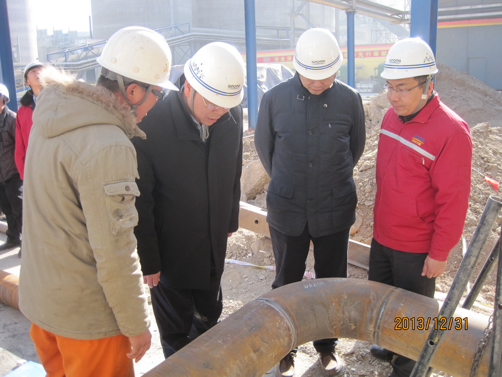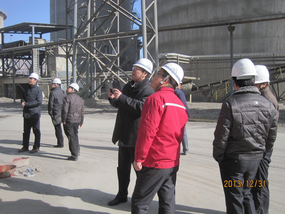 2013年12月31日,總裁胡也明來到漳縣祁連山水泥有限公司余熱發電項目施工現場,深入到集水池、窯頭鍋爐、窯尾鍋爐及汽輪機房施工區域認真查看了現場施工情況,并向項目部、施工人員了解項目進展情況??偛煤裁骱晚椖坎咳藛T、施工單位負責人等進行了座談。胡總指出,項目安全、質量工作總體做得不錯,但不能驕傲,因為安全無小事,我們要對員工的人身安全負責,特別是到了工程的收尾階段,要堅決杜絕麻痹思想,時刻把“安全第一、預防為主”放在首位,消除安全隱患,對高空作業、臨時用電等要做好防護,決不能為了趕工期而降低安全標準。