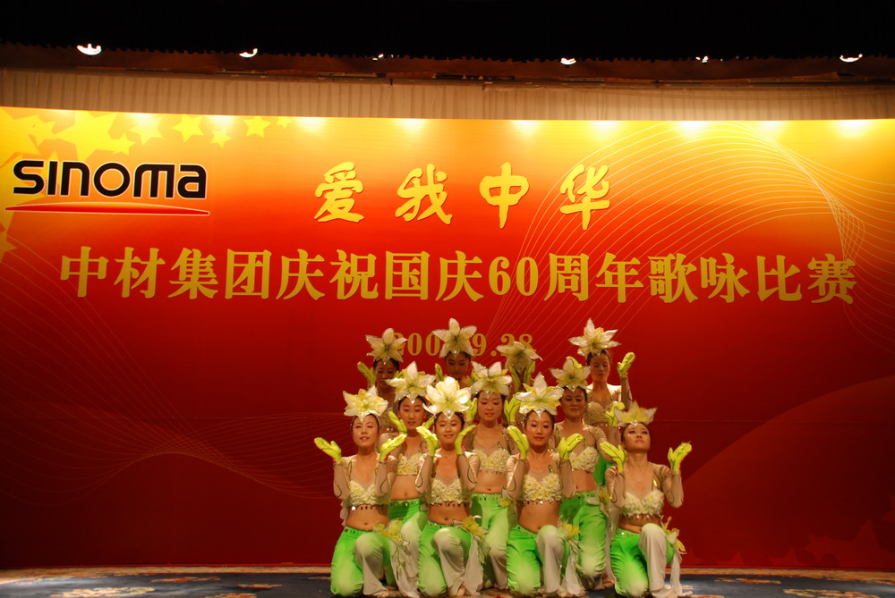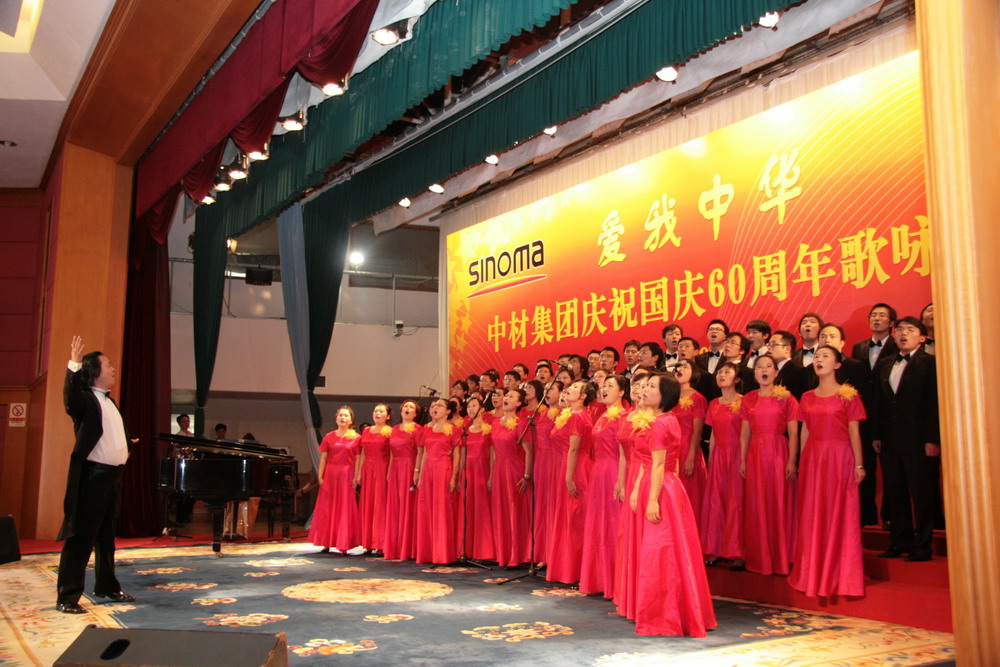 9月28日,以“愛我中華”為主題的——中材集團慶祝建國60周年歌詠比賽在北京隆重舉辦。集團領導班子和駐京津地區的14家單位共800多名員工參加并觀看了比賽及演出。