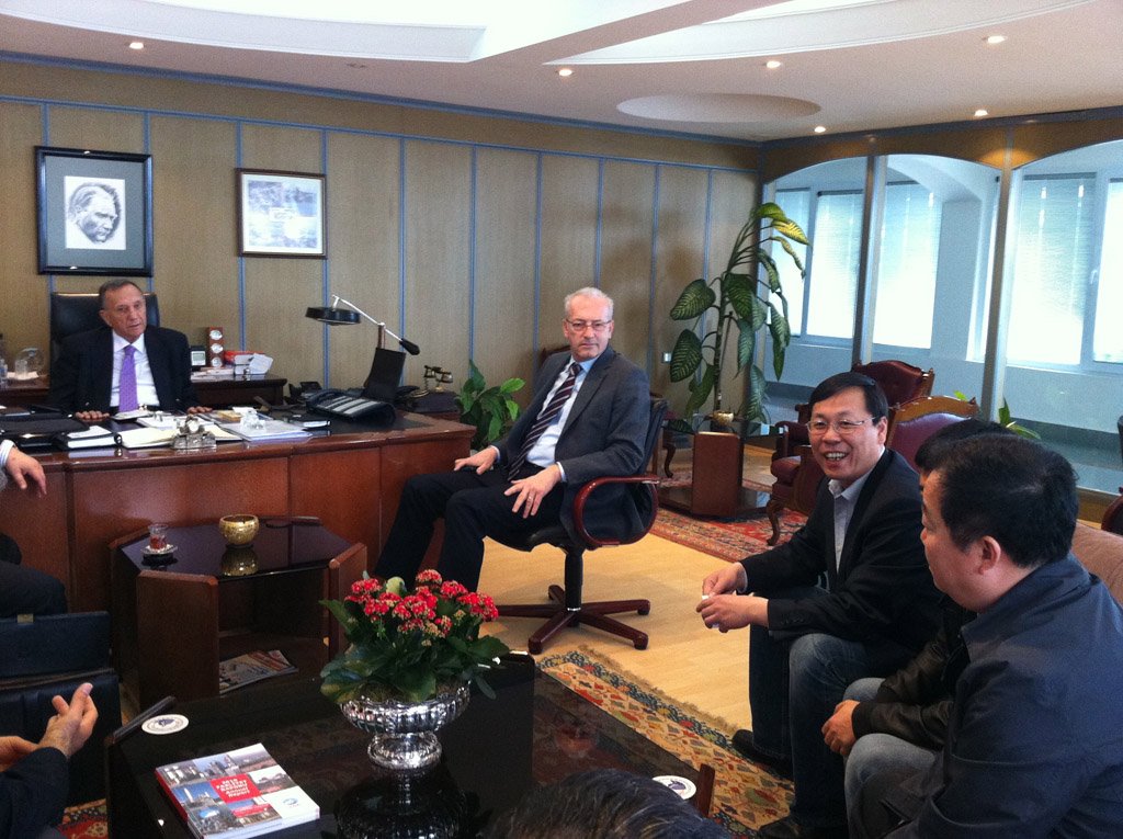 During the visiting, President Hu had a cordial meeting with Mr. Atalay ?AH?NO?LU the chairman and Mr. Hayrettin ?ENER , the general manager of NUH Cimento Sanayi A.S., He introduced them the remarkable achievements China has gained in the cement fields since its reform and opening-up, and the fruitful results obtained in WHR industries, He express his thanks to NUH Cimento Sanayi A.S. has given the strong support and cooperation during project implementation, and sincerely invites Mr. Atalay ?AH?NO?LU and Mr. Hayrettin ?ENER go to Sinoma-EC for a visit at a proper time.