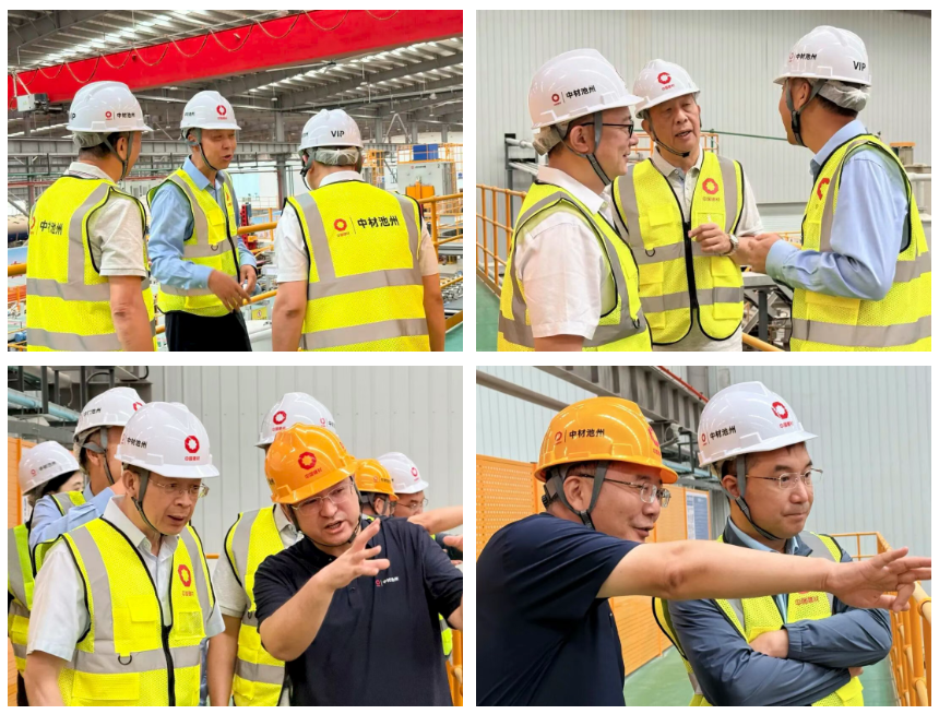 Also present during the inspection were Ma Lin, Director of the Board Office of Sinoma Energy Conservation Limited; Hu Xi, Director and Executive Deputy General Manager of Sinoma Energy Conservation (Wuhan) Co., Ltd.; Bai Feng, Deputy General Manager of Sinoma Energy Conservation (Wuhan) Co., Ltd. and Chairman of Sinoma (Chizhou) Energy Conservation New Material Co., Ltd.; Wu Sujun, Executive Deputy General Manager of Sinoma (Chizhou) Energy Conservation New Material Co., Ltd.; and heads of relevant business departments.