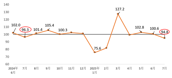 In July 2025, the Building Materials Industry Prosperity Index stood at 94.8 points, below the critical threshold and within the non-prosperity range. It decreased by 5.8 points compared to June and was 1.6 points lower than the same period last year, indicating a slowdown in the building materials industry.